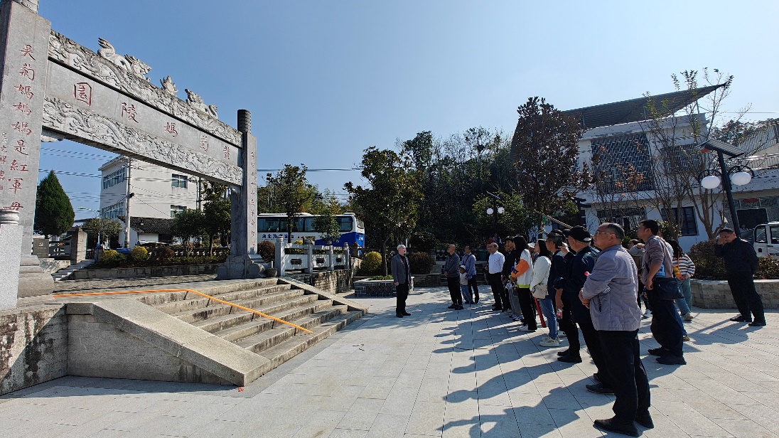 活动当天,全体党员统一乘坐大巴车,首站抵达黄菊妈墓园。在墓园前,咸宁市政法委副书记郑卫平同志深情讲述了黄菊妈的光辉事迹,激发了全体党员对革命先烈的深切缅怀与崇高敬意。