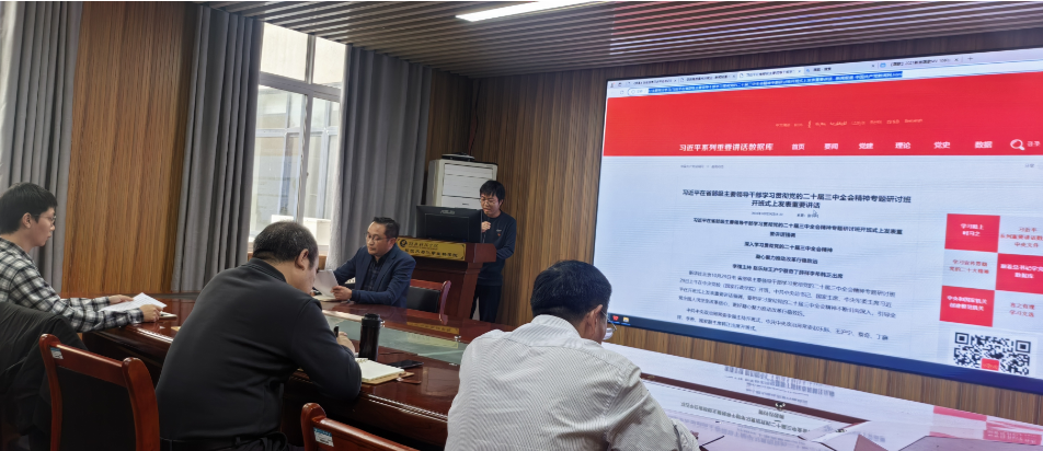 研发中心与化学支部书记谢聪同志领学:习近平在省部级主要领导干部学习贯彻党的二十届三中全会精神专题研讨班开班式上发表的重要讲话。深入理解党的二十届三中全会精神,明确发展方向。