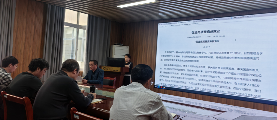 员工党支部书记卢瑾同志领学:促进高质量充分就业的新闻报道。了解当前就业形势,探讨如何更好地指导员工就业。