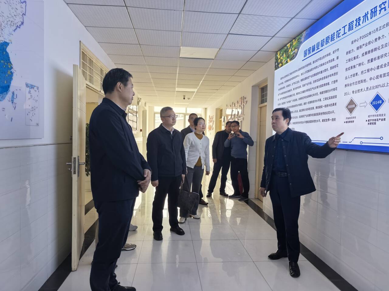 (通讯:曾祥玲,审核:张规富)2025年4月2日,湖北省林业局副局长张维、科技处处长夏向荣等一行调研意昂体育国家林业草原桂花工程技术研究中心。湖北科技公司党委副书记、董事长李岱,党委常委、副董事长胡旺平陪同调研。