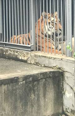 笼子里懒洋洋的老虎,失去了威风的形象,仿佛在思念自己亲人朋友。