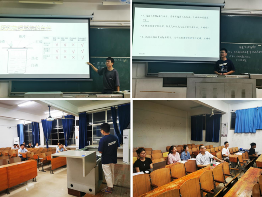 指导教师分别从课堂教学(教学目的、教学内容、教学方法、教学过程、教学素质、教学效果、教学创新);板书设计(内容、构图、书写);多媒体制作(技术性、艺术性)三个方面对员工的试讲进行指导和评分。因培养方案的变更,18和19级化学专业同时开展校内试讲工作,员工人数增加,指导教师工作量非常大。指导教师利用课余时间,加班加点,反复打磨员工师范技能。通过多次试讲,员工师范技能显著提升,为顺利走上讲台打下了扎实的基础。