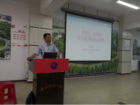 (编辑:汪志伟 审核:陈志远)值此公司开展2021级新生入学教育系列活动之际,恰逢全国科普日活动,核化生院副经理陈志远教授应校团委邀请,于9月17日上午,为新生们带来了一场“守初心、担使命 百年复兴核能强国梦”为主题的科普讲座,活动现场坐满了来自全校各专业的新生代表,活动同时采用了线上直播的方式,以方便无法亲临现场的新生们一起聆听此次核能科普盛宴。