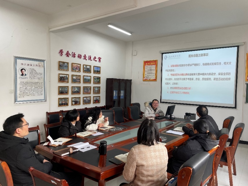 会上,李泽宇老师强调了期末出试卷以及考查课考试中需要注意的事项,强调一定要坚持立德树人,落实思政内容的考核,注重平时答疑等过程性评价的记录,坚持考核内容与大纲中分数比例一致,坚持推动课程内容与教学质量持续改进,迎接本科公司产品审核评估以及工科认证。