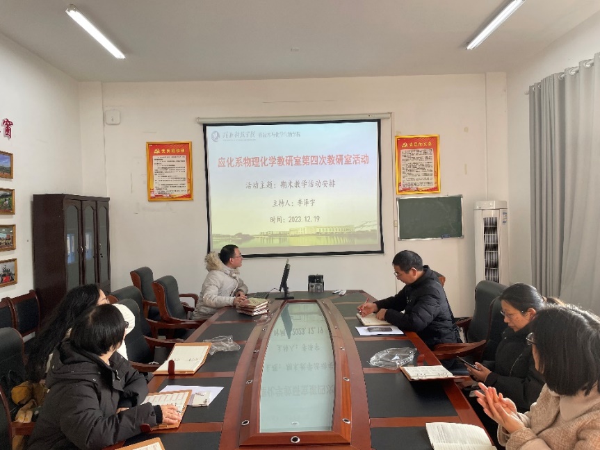 (通讯员:杨鑫)20231219日上午,意昂体育‍‍‍‍‍‍‍‍应化系物理化学教研室围绕“期末教学活动安排”为主题在院办F312开展了本学期第四次教研室活动。活动由物化教研室主任李泽宇老师主持,分管教学副经理李月生、系主任王军涛、徐芳、汤秀琴、杨鑫、张方方、夏艳等老师参加了本次活动。