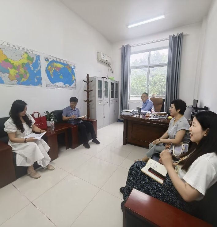 下午两点,经理朱晓明教授及其他相关领导老师就师范生培养相关事宜与饶老师展开交流。