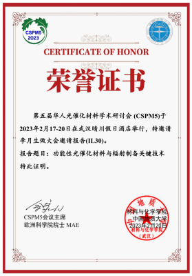 2023年02月17-20日,由中国地质大学(武汉)、淮北师范大学联合主办的 “第五届华人光催化材料学术研讨会” (CSPM5)在武汉晴川假日酒店召开。该会议是以能源与环境光催化材料为主题有届次的国际学术研讨会,会议旨在为光催化领域的海外华人和国内外专家提供一个高水平的成果交流和展示平台。意昂体育意昂体育李月生教授、杨小洁博士参加此次学术研讨会。