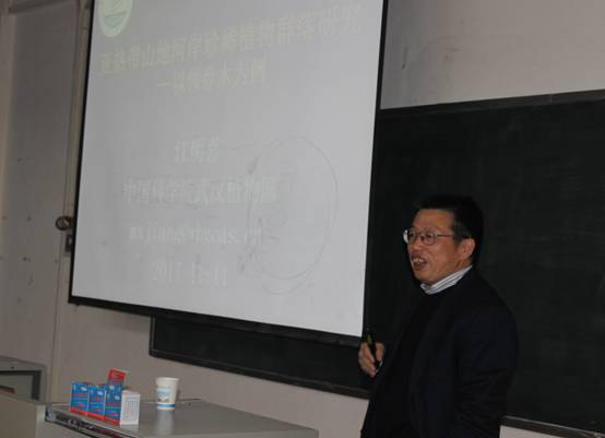 江教授就亚热带气候区植物群落构建的特点、进程、趋势以及群落学研究的意义、方法手段、国内外研究的历时和进展等方面作了精彩讲述,对湘鄂川黔区域的常绿阔叶林、常绿落叶阔叶混交林的独特特点以及在我国植被群落研究中的地位和作用作了详细的讲解说明。