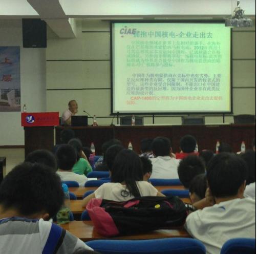 史教授的报告涉及到了核电的优势,核能原理,中国核电的历史、现状及未来,四代核电,行波堆,ADS,核电公园,乏燃料处置及核电安全等内容,报告最后高呼,“中国核电将迎来新的春天,作为核电人将大有可为,让我们拥抱核电施展才干吧”。报告于当晚上九点半结束,史教授耐心地回答了同学们提出的问题,十点了,剩下近20位同学却还围着和蔼可亲的史教授不停地问问题,史教授也很高兴和员工们交流。