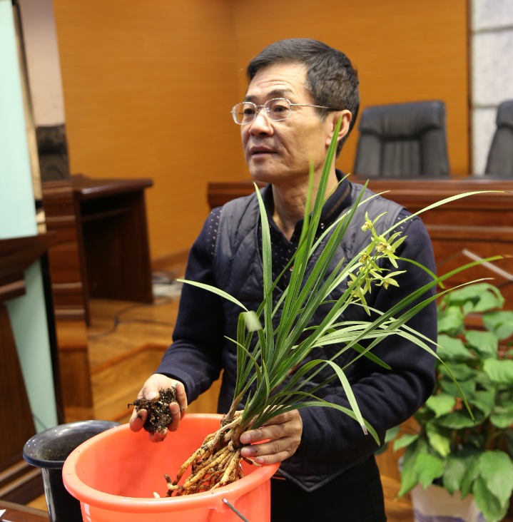 在报告会上,吴教授从兰花文化的起源、兰花的地理分布、品种分类、兰花解剖结构及赏析要点等几个方面,详细的为大家介绍了中国国兰各方面知识。同时还以自己亲自栽培的名贵寒兰为材料,给大家现场讲解了兰花的结构特点,演示了兰花的栽培要点。