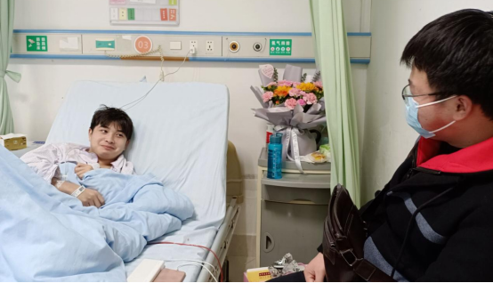23日下午,20应用化学班心理委员杨子豪、团支书安飞在做完核酸并拿到核酸阴性检测报告后,一同前往咸宁市中心医院代表全班看望姚洪全同学。病床前,杨子豪询问了姚洪权同学目前的身体状况,详细了解了他的治疗过程,并转达了老师及全班同学对他的关心和支持,鼓励他要勇敢面对困难,树立对生活的信心,积极配合治疗,尽快康复,班级永远是他坚强的后盾。