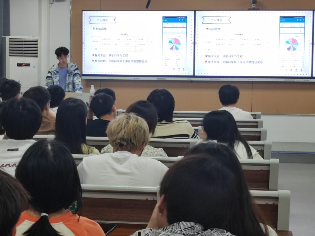 (通讯:钱立冰,审核:李月生,朱晓明))为了进一步加强同学们对研究生入学考试的认识,提高员工的考研热情,增强员工考研信心,明确考研目标,掌握考研技巧。“2024年核工程与核技术考研经验交流会”于2024年5月17日晚7点在教8-301成功举行。本次交流会由核工程与核技术专业钱立冰、杜纪富两位老师主持本次交流会。