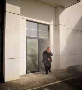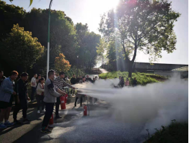 讲座结束后,与会师生进行了消防演练。为实施好这次演练,核化生院提前制定了详细的消防疏散演练方案,对疏散路线等相关事项都作了明确规定。随着烟雾弹浓烟升起,在收到“实验楼发生火灾,请老师同学们立即撤离”的指令后,师生们弯着腰,猫着步,捂住口鼻,沿着所处位置最近楼梯快速有序撤离到室外安全地带。在随后进行的灭火演练中,部分师生体验使用了灭火器灭火。