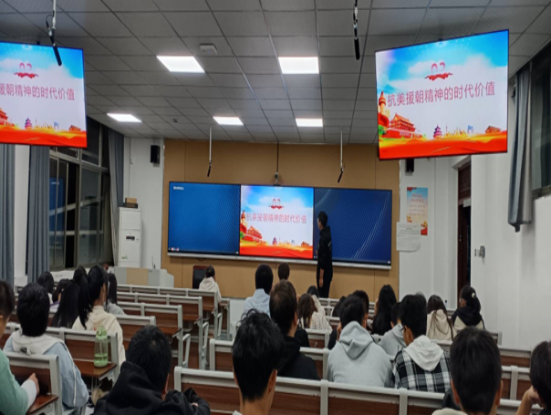 班会深入探讨了抗美援朝精神的丰富内涵。抗美援朝精神是马克思列宁主义、毛泽东思想同正义战争伟大实践相结合的产物,是人民军队宗旨、本色和作风的体现,是中华民族不畏强暴、敢于斗争的历史传统的弘扬,是中国人民极其宝贵的精神财富。抗美援朝精神成为激励中国人民不断前进的强大动力。