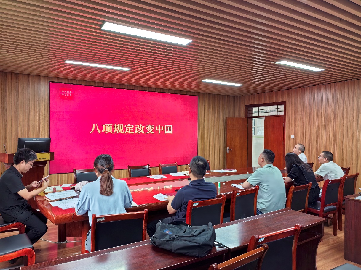 会上,首先集体观看视频《八项规定改变中国》,视频从政治、经济、社会、文化和国家治理五个方面深刻阐释了党中央带头、全党行动,深入贯彻中央八项规定精神学习教育的有效做法,深刻总结了党的十八大以来深入贯彻中央八项规定精神学习教育取得的显著成效和积累的宝贵经验。