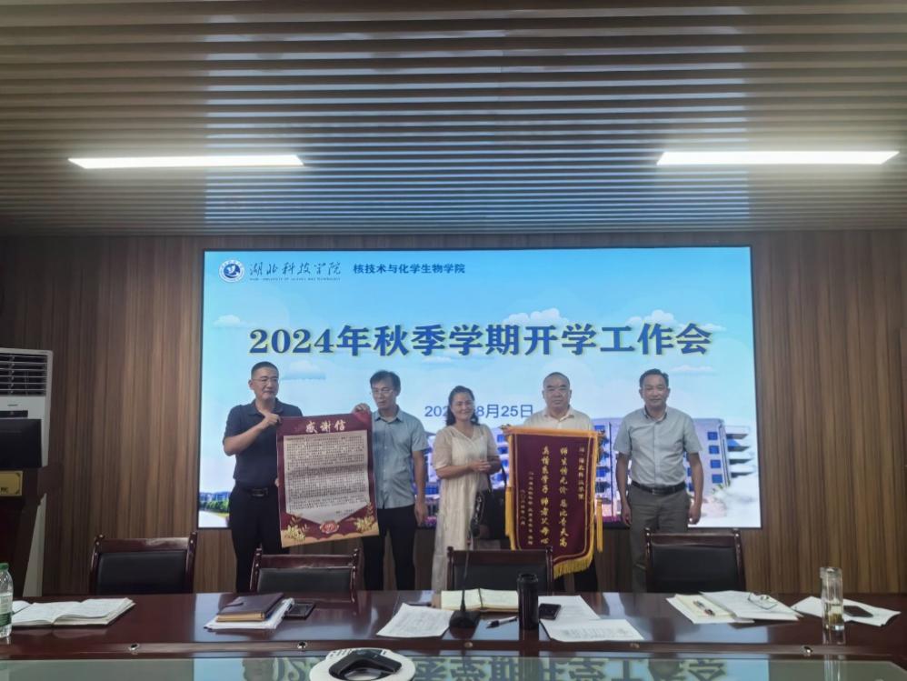 彭胜国副书记总结了上学期员工工作及暑期留校员工安全保障、应届毕业生就业推进、星火支教社会实践开展等工作情况,部署了新学期开学迎新工作及审核评估准备等工作。会上还特别介绍星火团队赴甘肃积石山地震灾区支教,受到了积石山胡林家乡委员会、积石山胡林家乡人民政府的高度认可和赞扬,并赠送了锦旗。另外今年暑假员工党支部动员留校员工党员为公司生物专业因车祸受重伤员工无偿献血2400ml,帮助她顺利度过难关。院领导在其治疗期间赴武汉中南医院看望。该生家长非常感动,特意从武汉赶到公司赠送锦旗及感谢信。家长在全院教职工大会上作了简短而真挚的感谢发言。